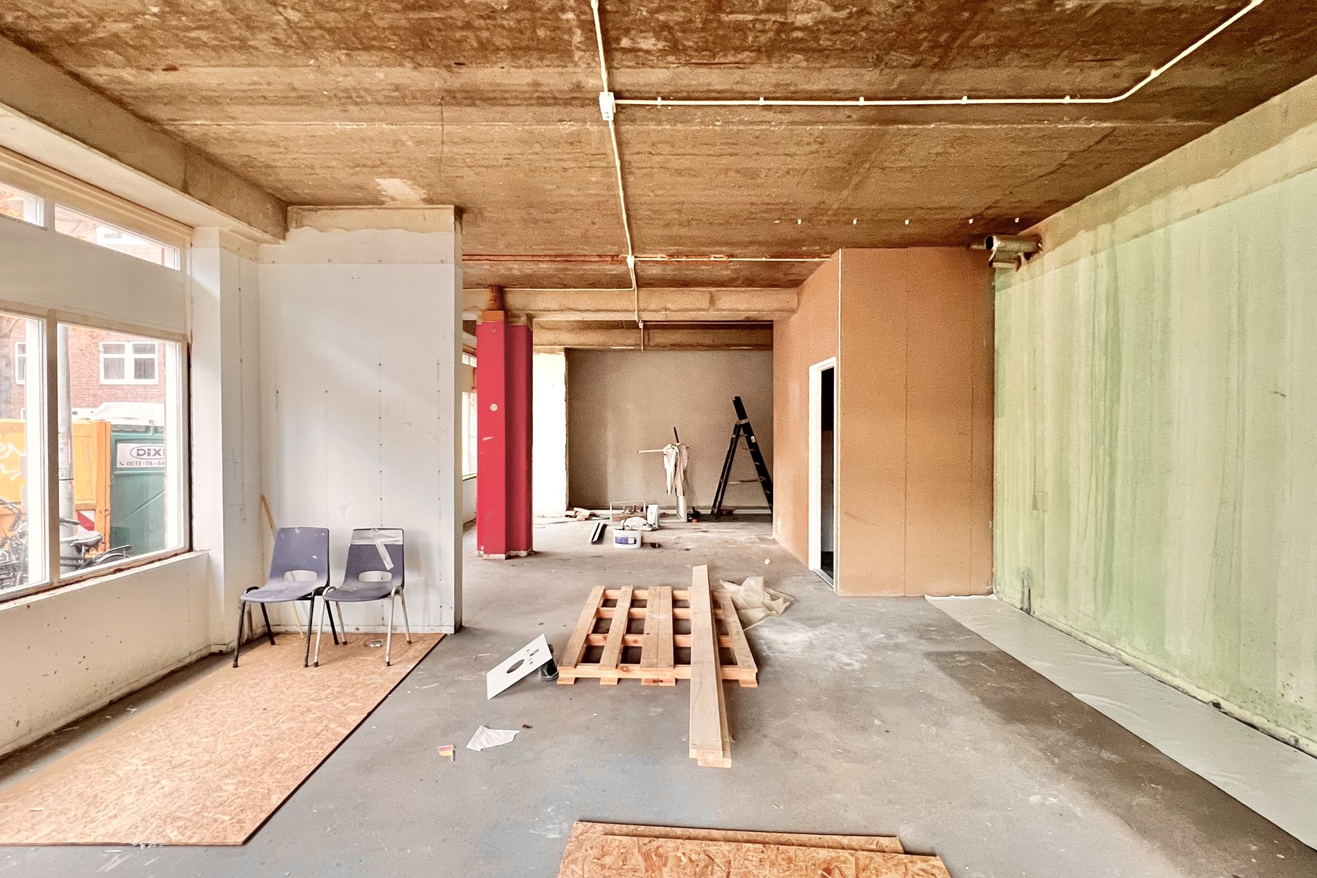 De bedrijfsruimte wordt momenteel volledig gerenoveerd en zal casco+ worden opgeleverd, voorzien van een nieuwe pantry, toiletgroep, verwarming, beglazing en gestucte wanden.